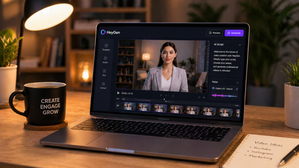 HeyGen is an AI-powered video creation platform that allows users to generate professional videos using digital avatars and voiceoversâwithout needing a camera or editing skills.